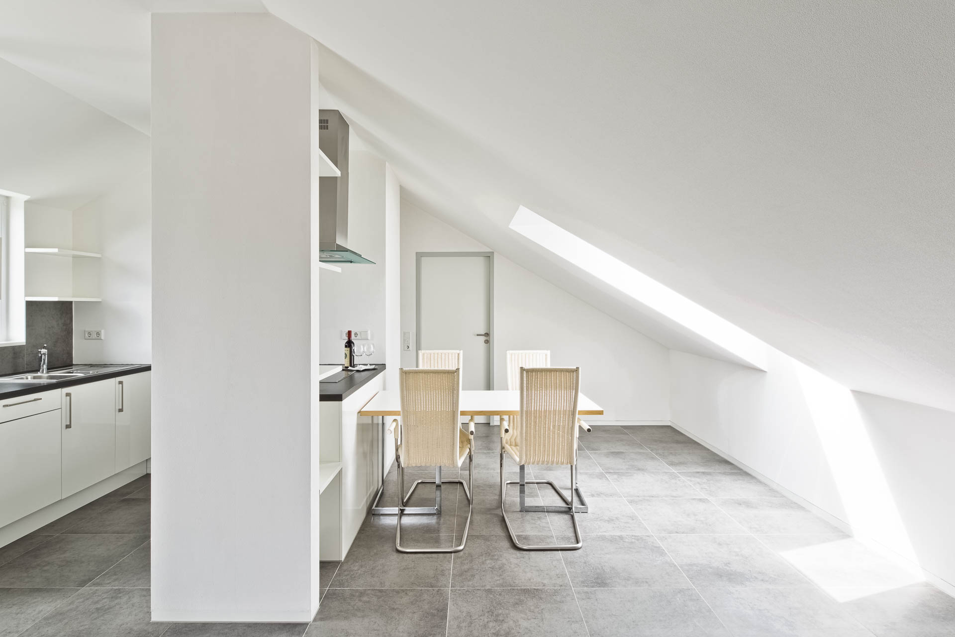 Renovierung oder Leerstand? Hohe Heizkosten führten zu einer unwirtschaftlichen Vermietung der Dachgeschosswohnung. Die Ausstattung war nicht mehr zeitgemäß. Doch selbst ein 30°-Dach macht hochwertigen Wohnraum möglich. Wenn man weiß, wie!