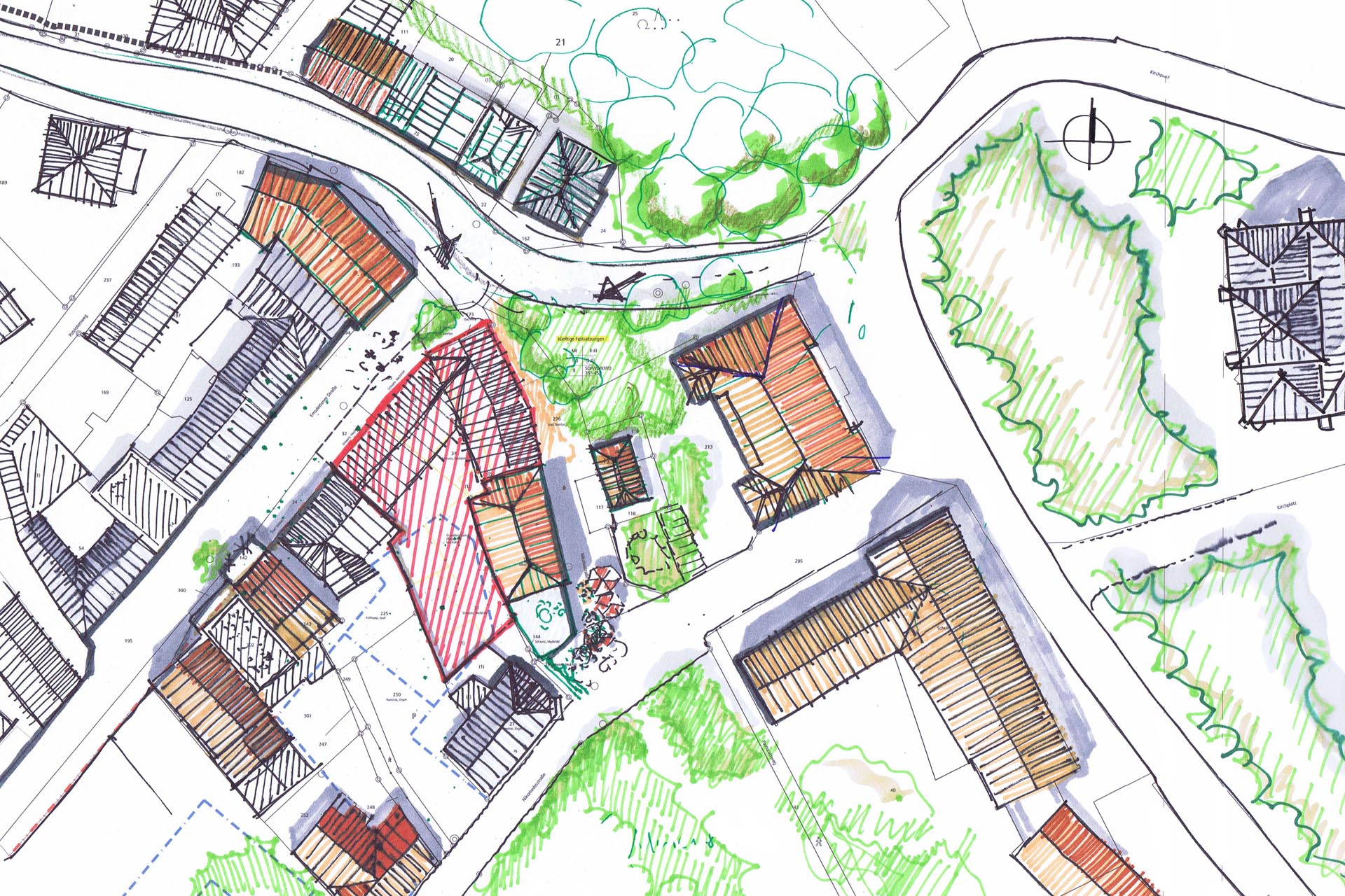 Das Baufeld befindet sich in exponierter Lage am Schnittpunkt dreier innerörtlicher Straßen. Es ist ein Filetstück zwischen der für den Kraftfahrzeugverkehr gesperrten Nikolaistraße und der verkehrsberuhigten Emsdettener Straße. Es liegt quasi im Wurfnähe zur beeindruckenden Pfarrkirche St. Nikomedes.