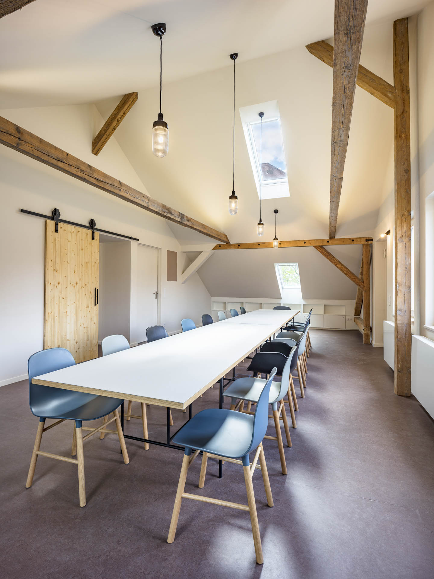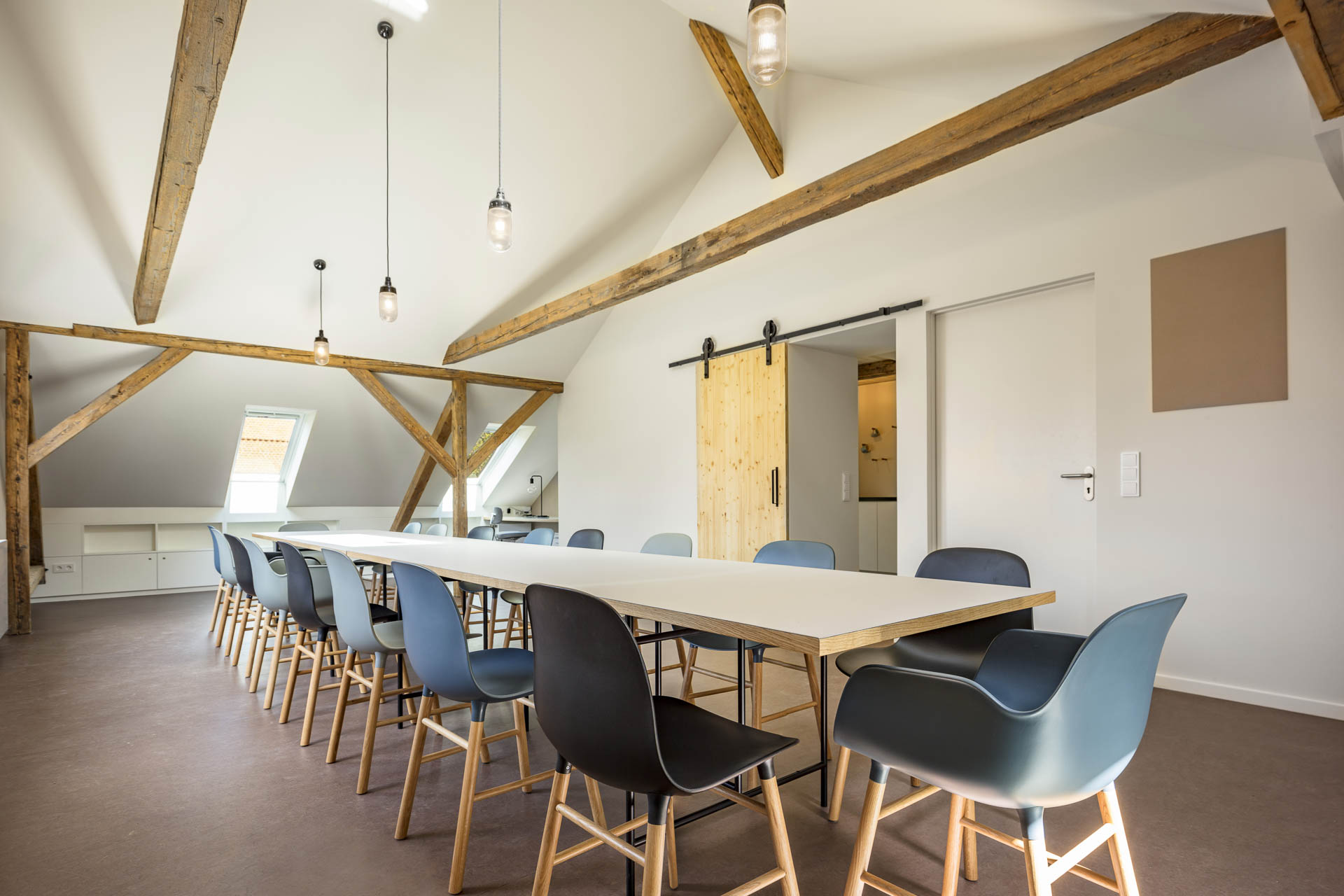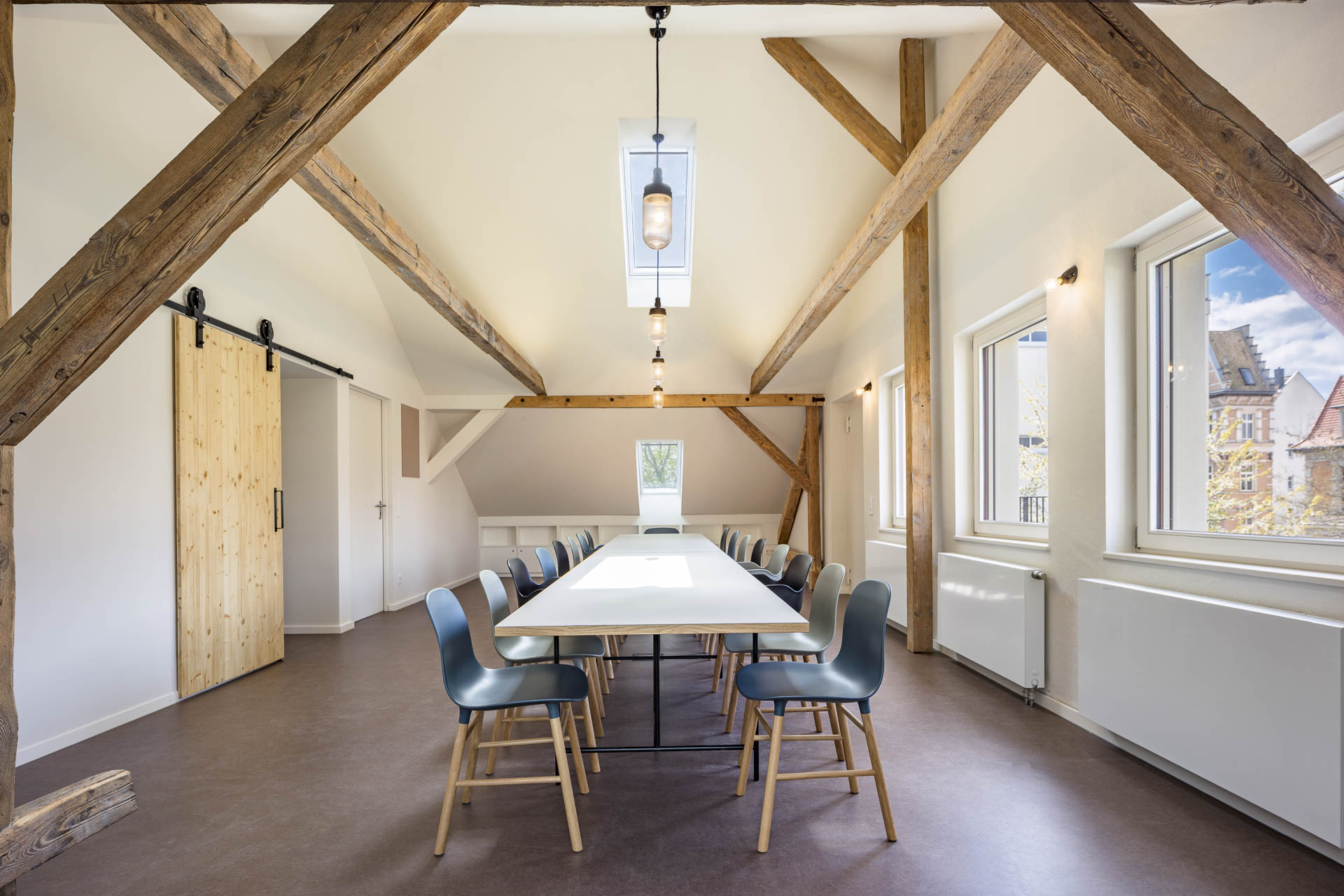 Der Besprechungsraum erstreckt sich bis zum First