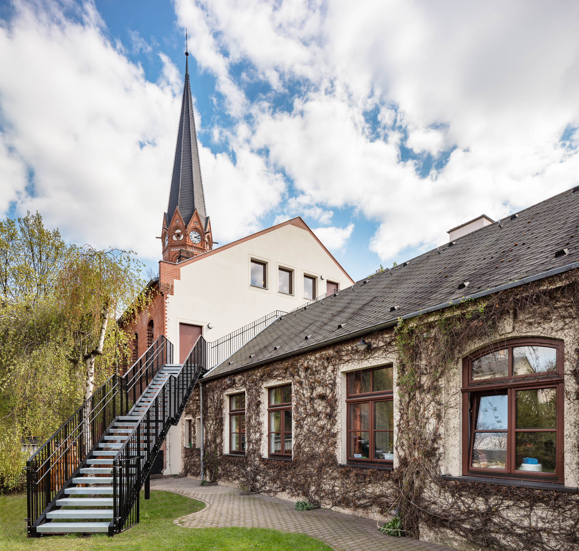 Eine neue Außentreppe am Westgiebel dient als zweiter baulicher Rettungsweg
