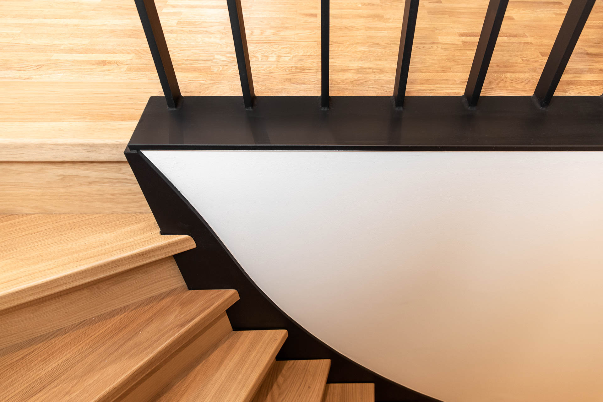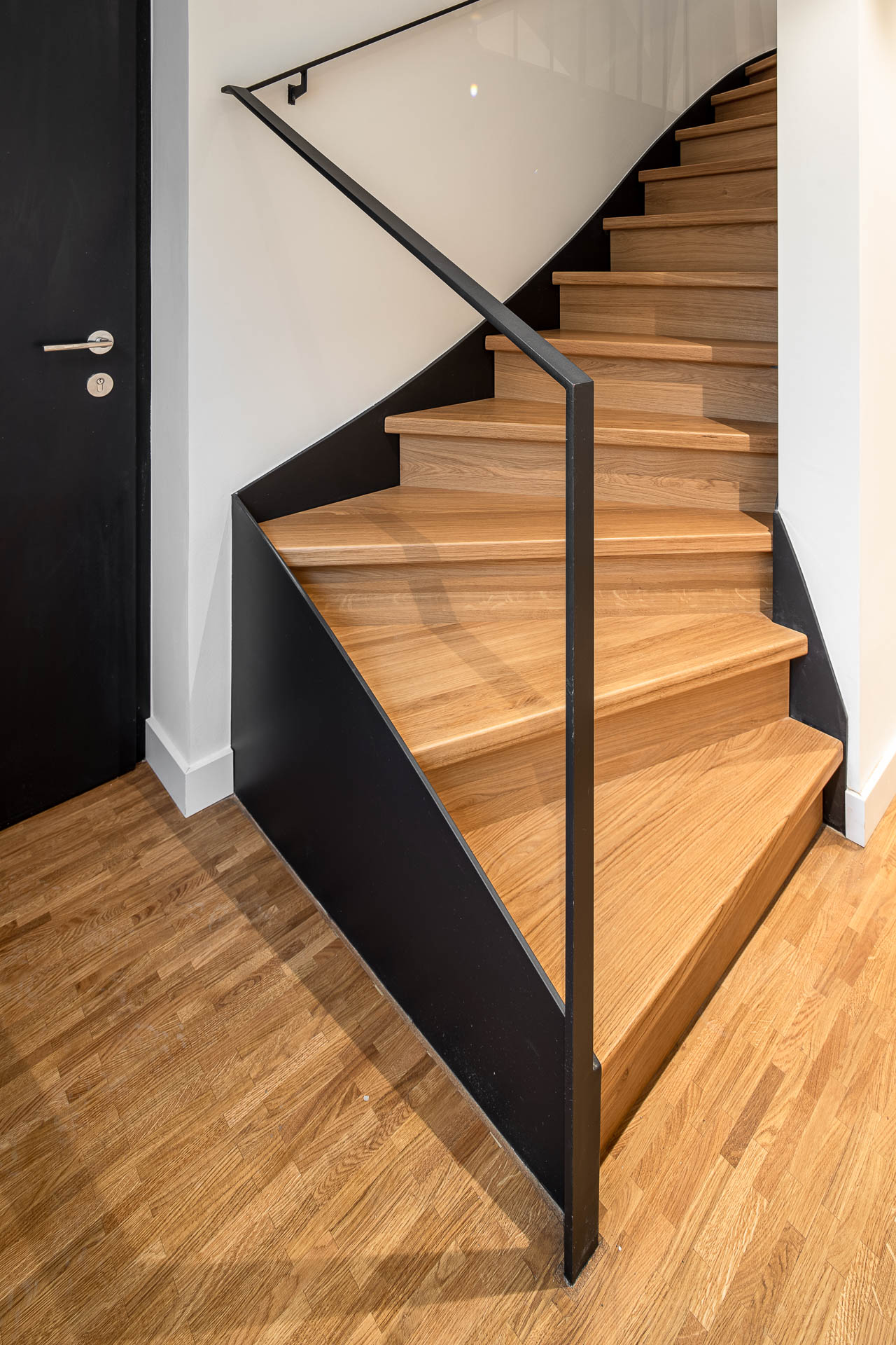 - Austausch der steilen Holztreppe ins Dachgeschoss durch eine halbgewendelte Stahltreppe